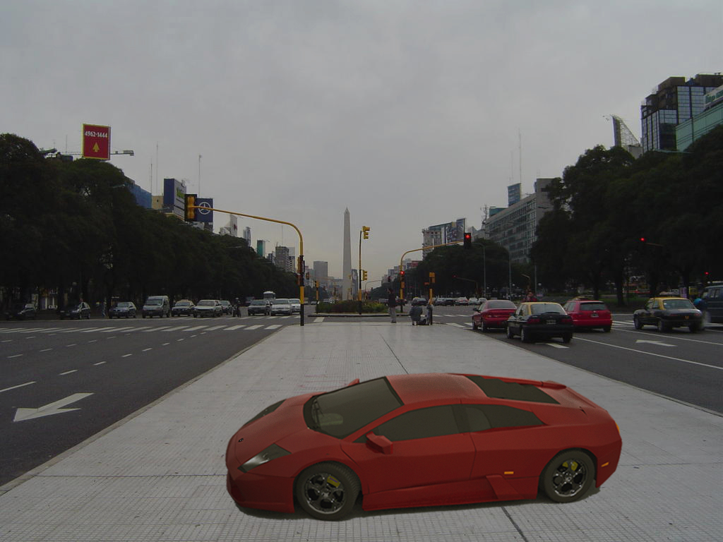 No sé mucho sobrel tema, pero opino igual que atalanta, fíjate que la imagen esta a una altura de una persona, 1.65m aproximadamente, y la del auto esta mucho más arriba, y fíjate que te quedo chica la Lamborghini.
