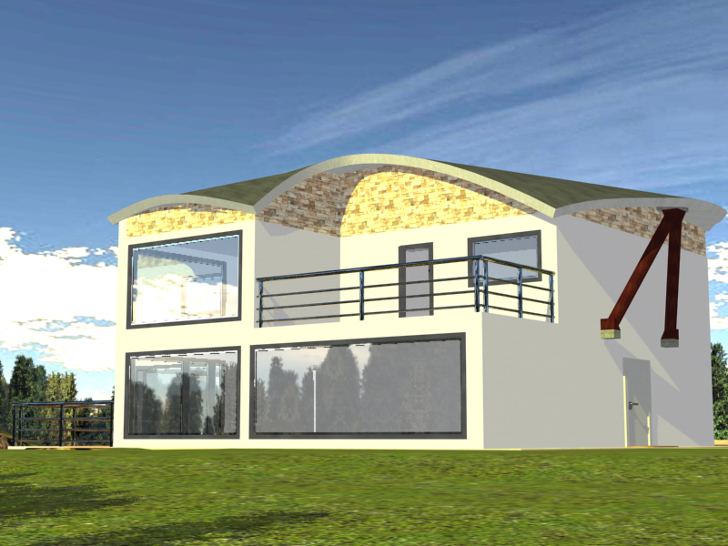 En qué programa haz echo eso, se nota que tienes muchas ganas por hacerlo bien, deberías escoger un mejor proyecto de casa porque esa esta horrible, es un mal diseño, esas cubiertitas, que son cascaras de hormigón? (tan gruesas) y que hace ese soporte a un lado si no es necesario, se soportan solas, parece trabajo de estudiante de primer año de arquitectura, pero del primer día en la u.