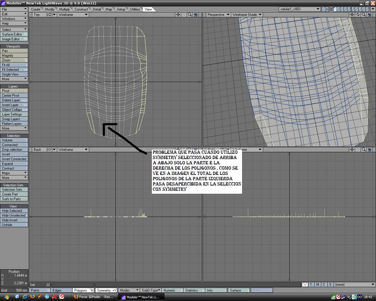 Te comento que estoy estudiando por medio de un libro que me compre hace 1 año atrás se llama inside LightWave 8 de Dan Alban estoy en un capítulo donde tengo hacer un tutorial en el que me pide modelar un teléfono celular medianto un backdrop de imagen, la técnicas que emplean es por medio de un rectángulo y utiliza la herramienta, Symmetry junto con bandsaw para hacer las divisiones de los polígonos en forma vertical y horizontal, el libro me dice que debo por el momento trabajar en la parte de tr(top right) (x,z)del los viewports en el cual por medio de la imagen voy modelando el teléfono, otras herramientas que incluye para modelar los borones son smoothshift y super Smooth shift que en el caso mío se ha remplazado; (según tengo entendido), por la herramienta multishift para darle forma a los botones tanto de los números como los botones de arriba de los menús.