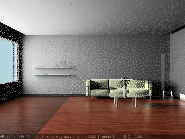 Bueno, se me ha ocurrido una idea, a ver si os animáis que estáis muy paraos todos. En el foro de Vray alguien publico una escena que viene con el 3ds Max 6 de ejemplo renderizada con Mental Ray para renderizarla con Vray.