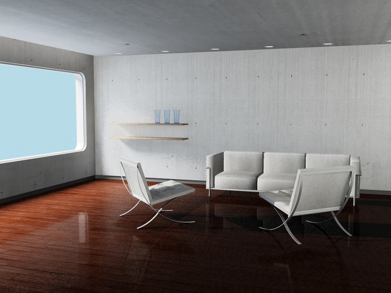 Hola: yo baje el archivo y lo modifique agregando dos sillones y bueno aquí subo la imagen a ver qué piensan porque no logro hacerlo similar al de ustedes, es decir mi calidad es bastante discretea, gracias por sus posibles consultas.