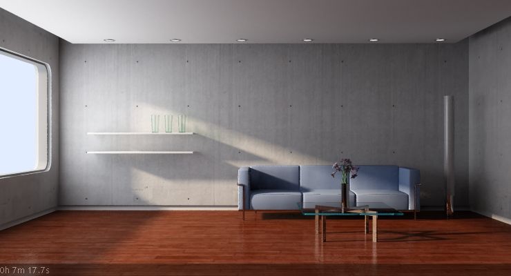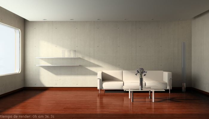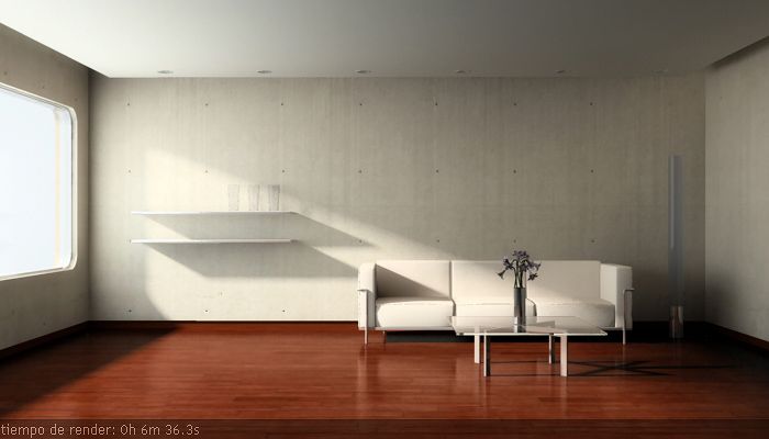 Aquí pongo una nueva prueba en la que he conseguido una relación calidad-tiempo excelente, al menos para mí. He tenido problemas de antialiasing (en la ventana sobre todo) pero es debido al filtro que le puse, el Catmull Rom ya que he usado el adaptative -1 2 que en la anterior prueba fue bien. Saludos y a darle caña para subir esa calidad y bajar los tiempos.