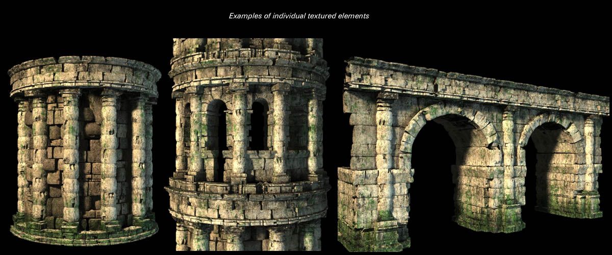 Hola a todos de nuevo. Aquí os dejo unas imágenes de otro proyecto en el que he estado trabajando últimamente en plan experimental. Quería hacer algo que se apoyase en el detalle geométrico en vez de en el detalle en las texturas, y aquí está el resultado. El objeto en cuestión tiene unas 6000 piedras individuales, creando una bestialidad de escena con más de 3, 5 millones de polígonos. El edificio no es tan bonito como el de Hagia Sophia, pero como experimento parece que no queda mal.