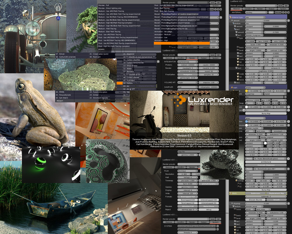 Muy buena pinta, sí señor, esto es lo que comentan los autores del plugin. El equipo de la comunidad LuxRender se complace en anunciar el lanzamiento de LuxRender versión 0.5, un motor de render con base física de código abierto. Esta es la primera puesta en escena importante en el camino hacia la versión 1.0, y viene con un gran número de nuevas características, además esperamos que nos ayude con sus comentarios a mejorar el programa proporcionando su experiencia.
