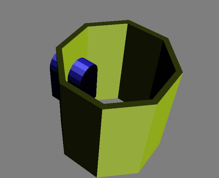 Simplificado, quiero que el objeto azul haga un corte en el verde, y que se quede vacío donde estaba en la malla del verde.
