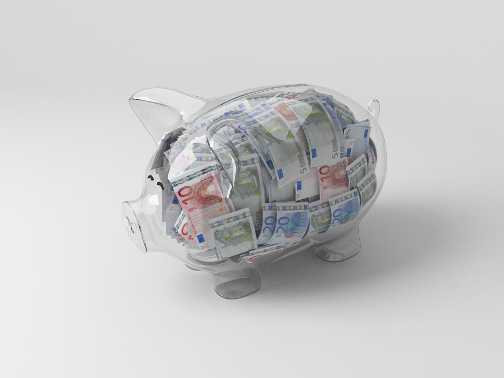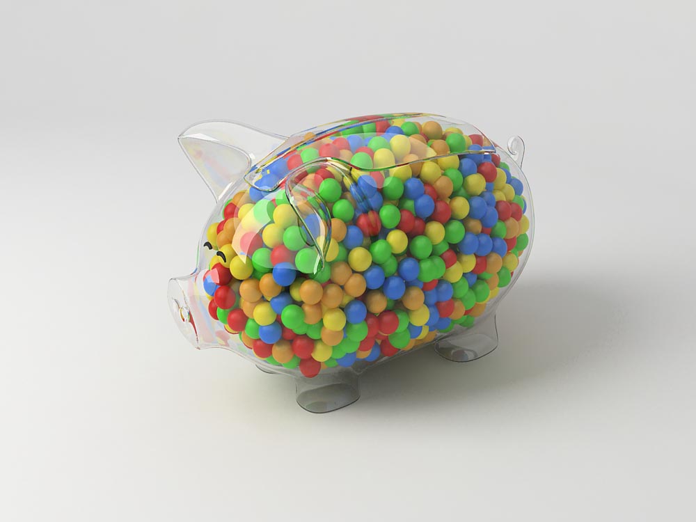 He hecho la siguiente ilustración. Ahora el cliente me pide que en vez de relleno de bolas lo relleno de billetes. El de las bolas lo hice con Particle Flow y un poco de retoque manual, pero para los billetes no se me ocurre cual puede ser la solución.