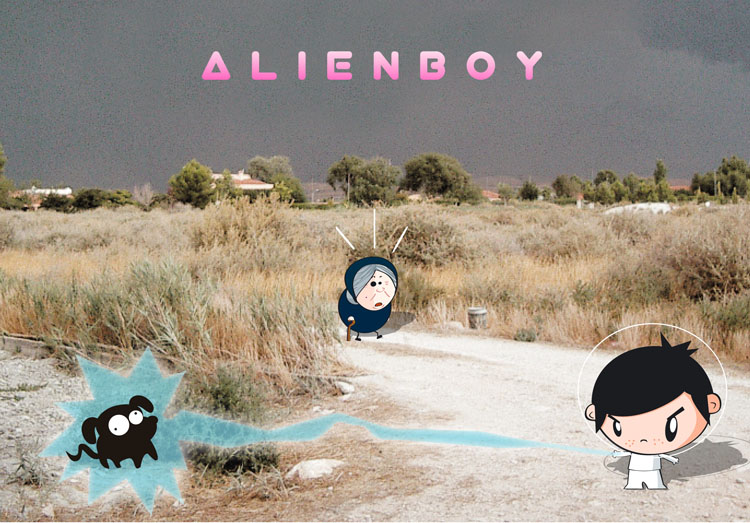 Qué bueno Ferriz, el perro esta de traca y la anciana, lo que no me convence mucho es el niño, es humano y yo creo que un extraterrestre típico, verde, gris, en fin, ya sabes el clásico a tu manera, quedaría de, además creo que ya tienes un personaje extraterrextre, si no recuerdo mal.
