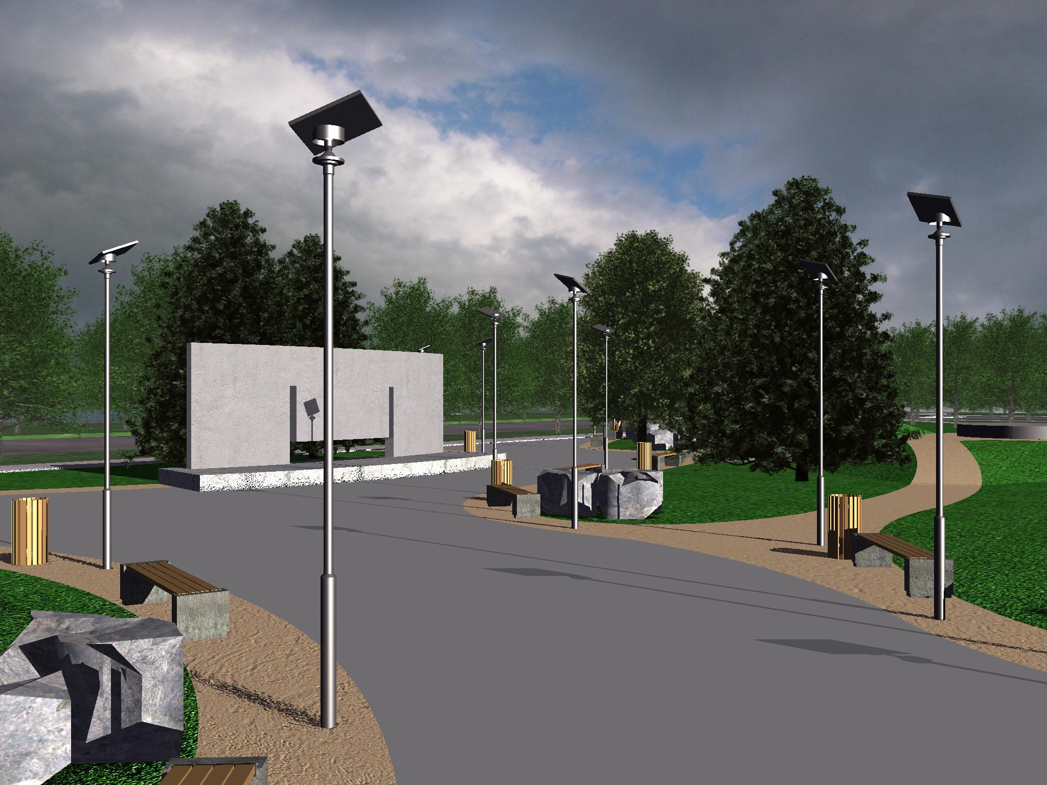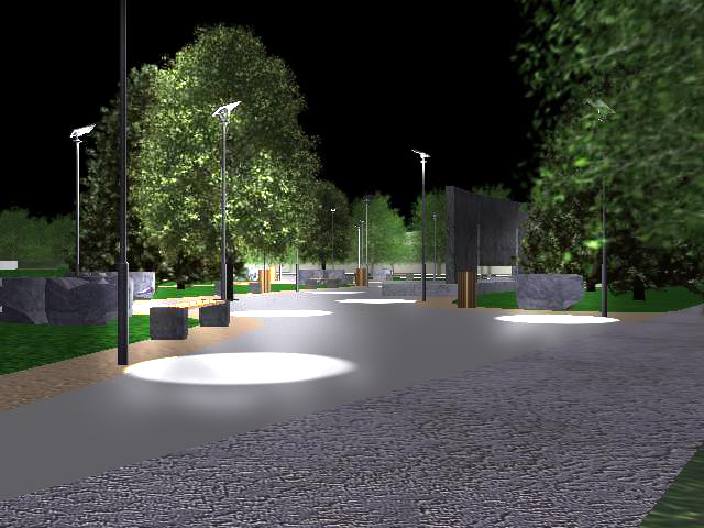 Ya que usas Vray, podrías usar materiales Vray, son muy buenos y ya vienen predefinidos, tal vez los puedes acomodar a tu gusto, pero nada más, te lo recomiendo para toda la escena y más que nada para el pasto que está muy liso, después fíjate que en una de las imágenes se ve el cielo por debajo de los árboles, y se ven las nubes de cielo que le pusiste, y a la altura de un hombre no hay nubes, hay unas imágenes que no tienen sombra y si tienen luz, ojo, los árboles no sé como los hiciste, pero no me gustan para nada, fíjate de conseguir, por que esos parecen irrealista, y cuando tengas todo eso terminado, quedaría bueno que le pongas, una brisa, o llovizna, quedaría bien en esa plaza, pero con tranquilidad y paciencia anda cambiando las coas que te dije si es que estas de acuerdo y la imagen va a estar mucho muy buena, y después lo que puedes hacer es en el fondo agregarle una mini ciudad, no hace falta que sean edificios reales sino poniendo cubos y eso hace a la referencia de edificios, igual hay edificios gratis por internet.