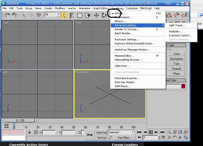 En cualquier max le das a la opción de render y te sale el menú desplegado donde puedes hacer todo respecto al render, cambiar motor, cambiar tamaño, pues a mí no me sale, no sale nada y si vuelvo a al menú de arriba de render, sale marcado con un visto y si le doy otra vez desaparece el visto, pero no me sale el menú, si le doy a f-10 igual.