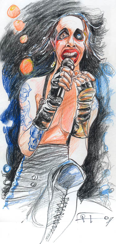 Remedo a marylin Manson, lápices de colores y algunos brillos con témpera blanca.