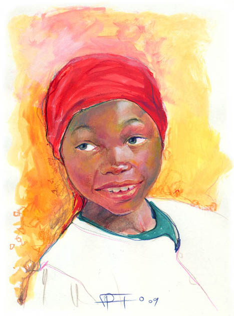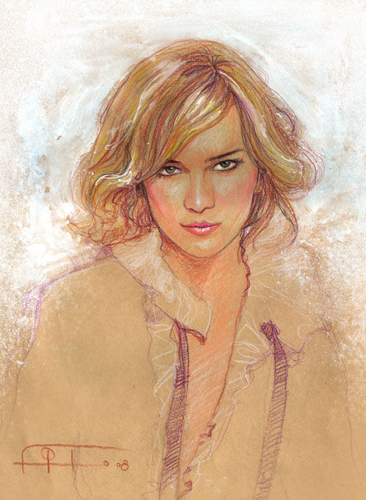 Fíjate en el cuello y ojos, ahí están los toques ligerisimos con agua.