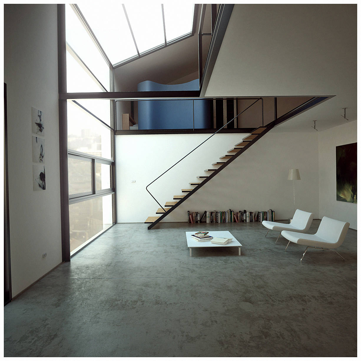El modelado es todo original menos el poco mobiliario (Archmodels) sacado de una imagen real de interiorismo.
