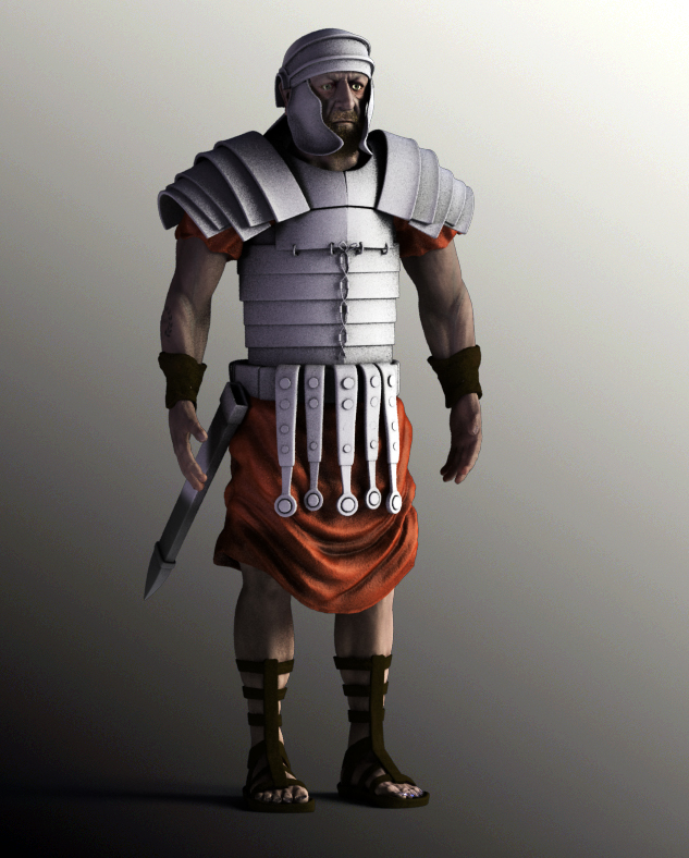 En cuanto al último mensaje de tu personaje (ya en armadura y vestido) el Yelmo ha sido hecho muy bien (a lo menos así me imagino a un soldado romano), pero la armadura me viene un poco insolita (de otra parte no he visto a muchos soldados romanos tampoco.