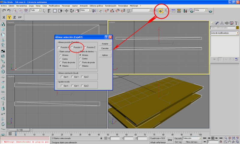 Hola Pablo. Soy sakataque solo que he cambiado el usuario, ahora soy azdream. Para poder hacer lo que quieres hay un botón de alinear, seleccionarías el máximo de uno y el mínimo de otro, y le das al eje y de pantalla, con lo cual te lo alinea verticalmente y uno encima de otro (si es eso lo que querías que creo que si).