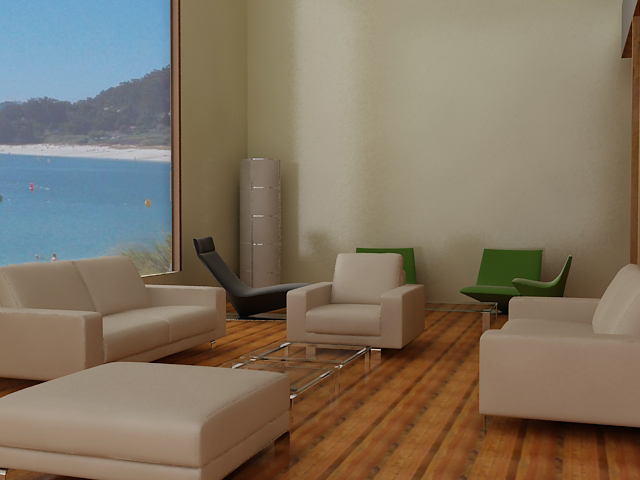Esta genial, lo único, el suelo, está muy repetitivo, no queda muy bien, y la playa, parece un cuadro en vez de una ventana, pero lo que es la idea, está muy bien la escena.