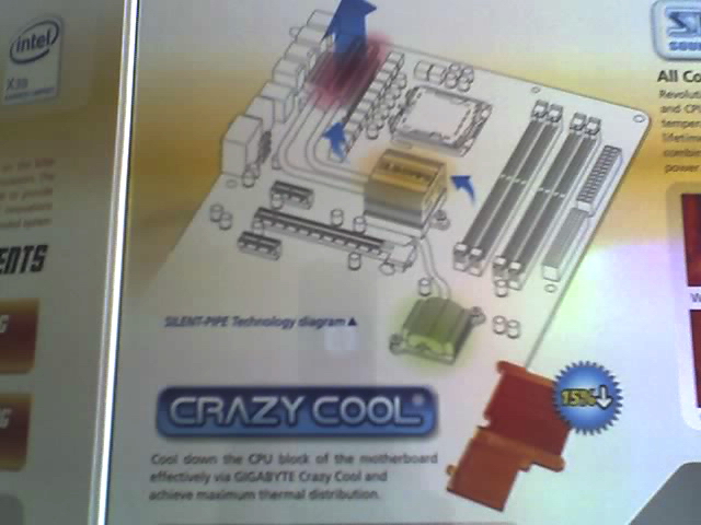 Por otra parte, me jode mucho quitarle algo a la placa, en la caja pone que el crazy col (en teoría supongo) enfría un 15%. Y además sale con dibujos en tonos azul glaciar, termometros con flechas descendentes y copos de nieve.