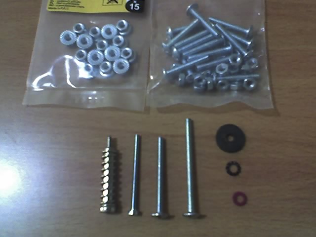 No se yo si lo que me han dado me servirá. Unos tornillos finos, unas arandelicas, unas tuerquecitas, todo parece tan endeble, luego pongo las fotografías, pero me parece a mí que como lo tenga que montar con esto. Cuando salga me acercare al aki o al Leroy-Merlin otra vez.