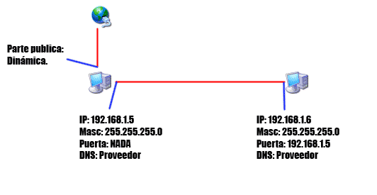 En efecto Mario, parte de la clave es dejar la puerta de enlace en la tarjeta del que se conecta en blanco, gracias.
