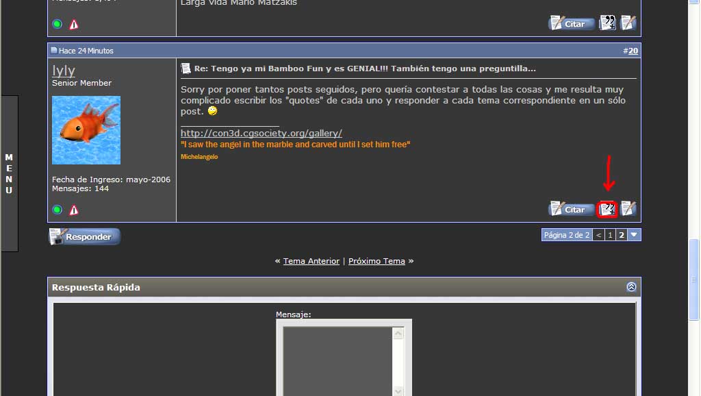 Desde hace tiempo estaba tentado, pero al leer este hilo me he decidido. Mi próxima compra una Wacom y por lo que he visto me parece que va a ser la Bamboo medium pues no se va mucho de precio.