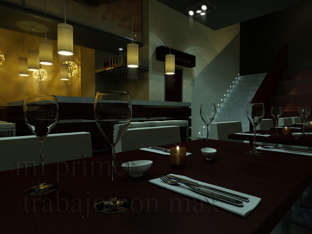 Hola a todos. Este es mi primer trabajo con 3ds Max y quería compartirlo. Aún me queda mucho que aprender, tiene bastantes fallos (a las copas les falta geometría, las sillas son demasiado bloque), pero he descubierto que me encanta el 3d. Es el primer paso del que espero será un largo viaje. Saludos para todos.