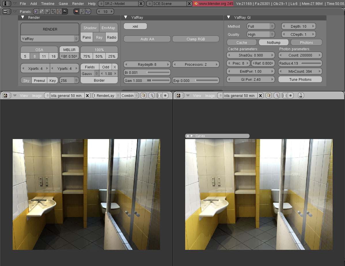 Iluminación de un baño con YafRay