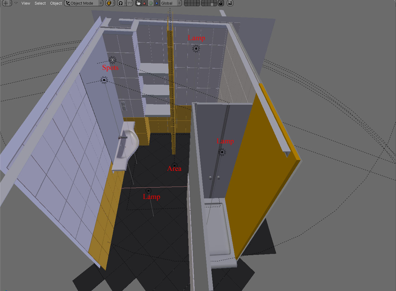 Hola gente. Pues estoy intentando aprender a manejar Yafray y para ello he intentado recrear el baño que estamos haciendo en mi casa (estamos de obras).