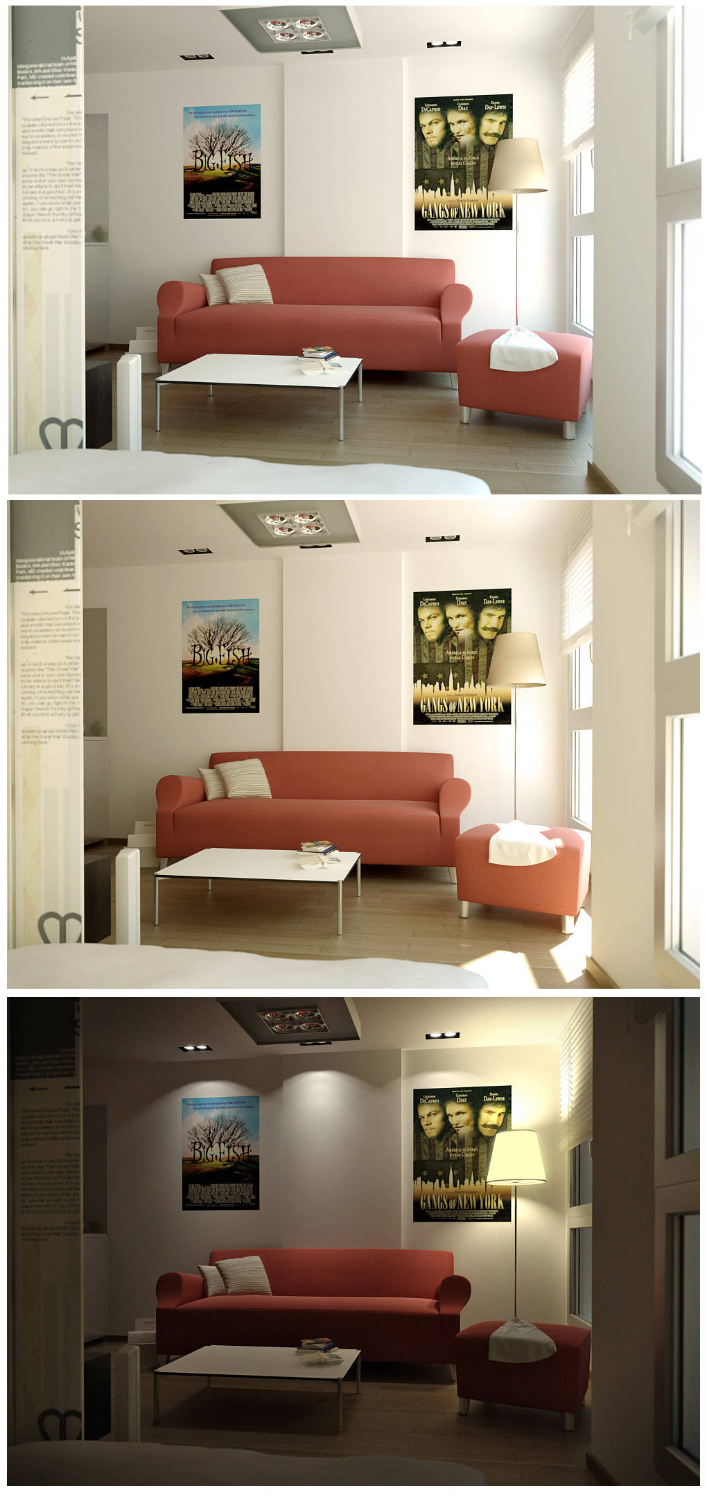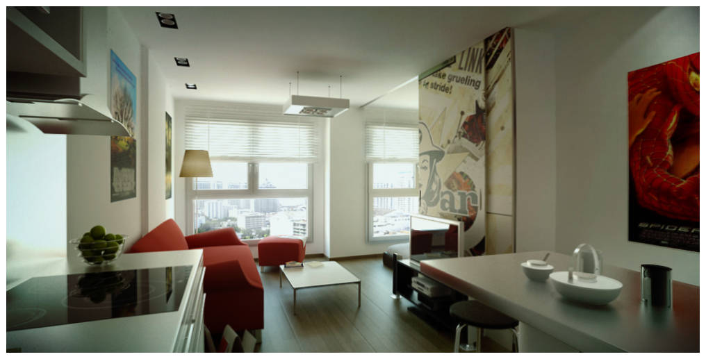 Hola gente, os traigo de nuevo un render-interior nada del otro mundo (alo que modelado se refiere,) pero un ejercicio interesante en cuanto a iluminación y la colocación de la cámara, ya que el tamaño del apartamento no daba para mucho espero vuestras críticas.