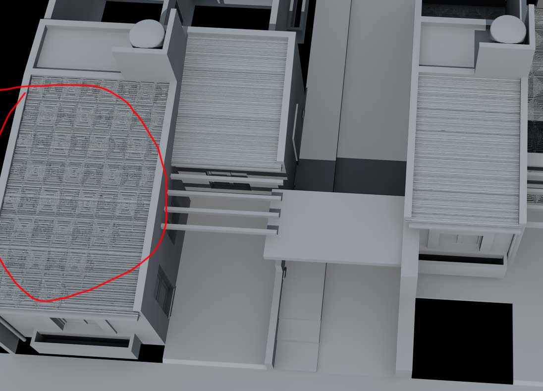Buenos días gente, para hacerlo sencillo, les dejo 2 imágenes, es un techo de chapa que estoy preparando para una casa, simplemente hecho con un displace común y la textura de chapa, una luz directa y parámetros normales en 3dsmax, absolutamente más nada tiene puesto la escena, nada raro, solo aplicado el material.