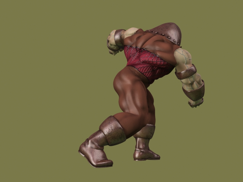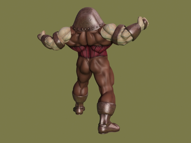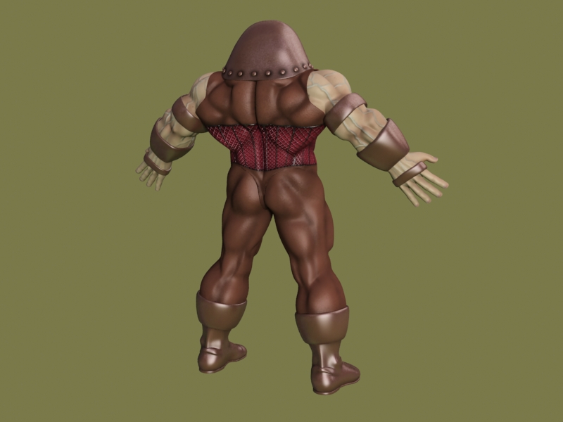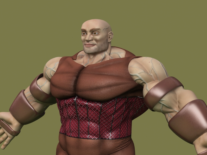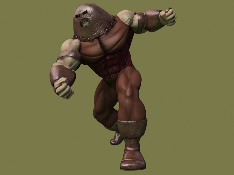 Saludos amigos. Hace eones me empecé a trabajar al juggernaut, (quizá alguien se acuerde), tuve que parar con el porque enía que hacer más historias caseras y después por dejadez. El caso es que hace poco lo retomé y ya lo doy por terminado, creo, bueno, a falta de ponerle gestos y tal. Pues nada, subo un par de imágenes y un test de animación con un (*.bip) del 3ds Max (no he tenido tiempo de animarlo en condiciones). Las proporciones son en plan cómic y la escasa capacidad craneal es aposta, ya que el pollo no es muy listo, sino una masa de músculos hypertrofiados.