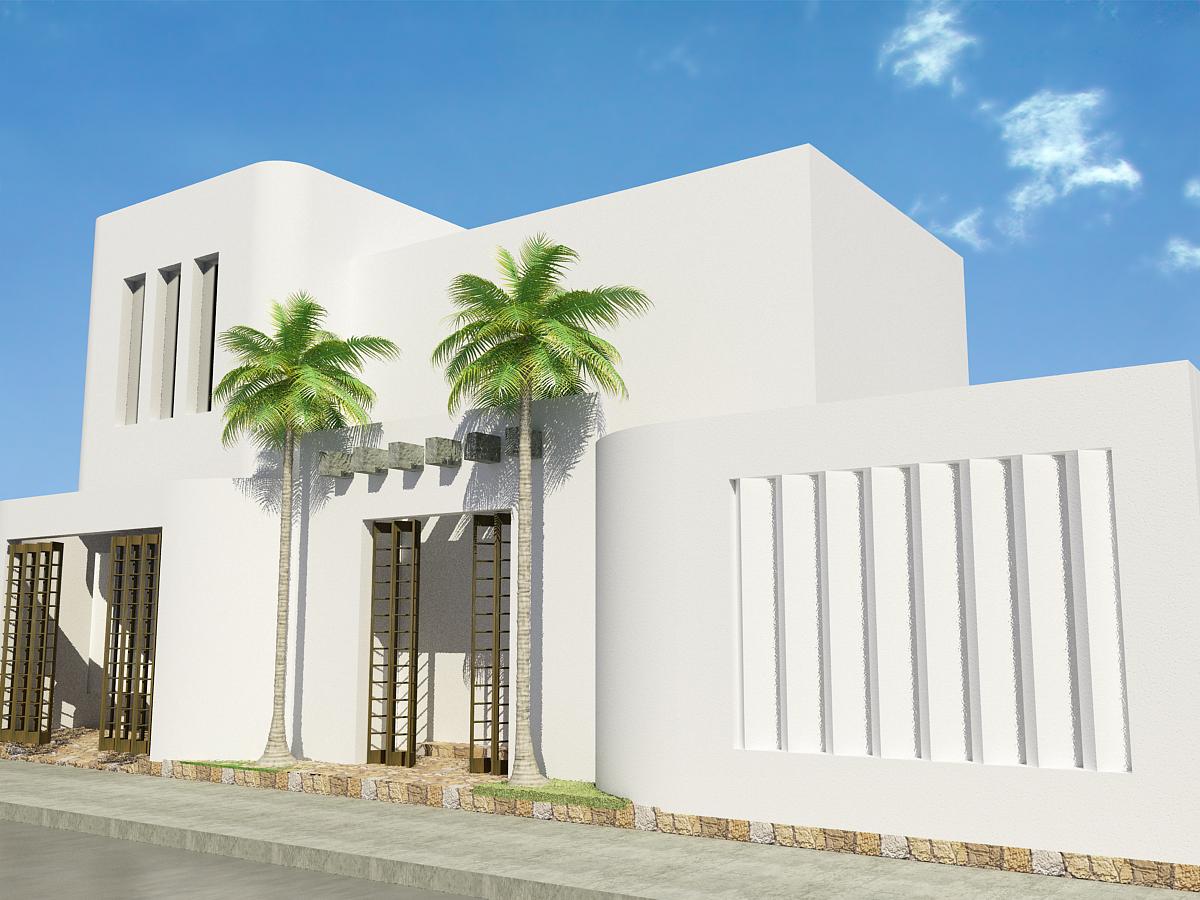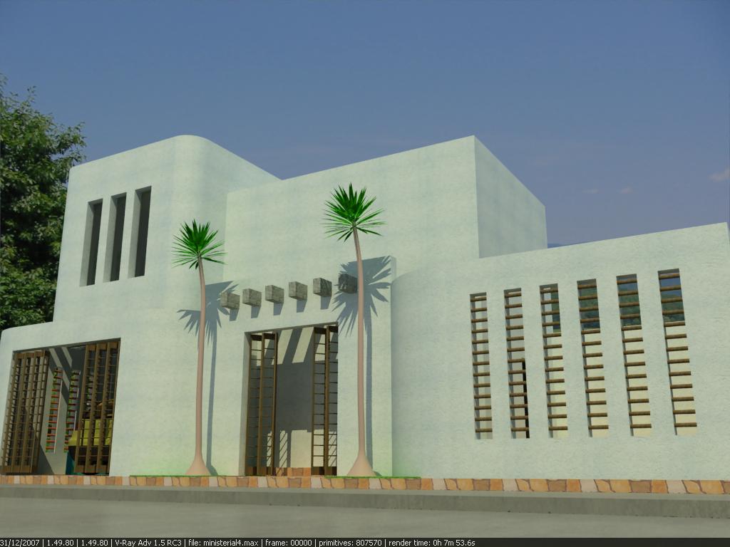 Hola, a mi humilde opinión, creo que has mejorado la textura blanca. La banqueta, me supongo que, no la has terminado, las palmeras no se ven bien, en ese espacio tan reducido, prueba, mejor con las que tenias, cambiando las texturas, y alturas, otra cosa que te podría servir, es utilizar un modificador de cámara, para que los muros salgan rectos, y no en perspectiva, en cuanto a la altura de la cámara me parece mejor como la pusiste en la segunda vista. Un saludo.