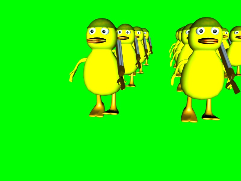 En la escena aparecen muchos patos, lo que quiero es que, agan los mismos movimientos, así que, lo que ice es crear uno con lo que debían acer todos los patos y luego emparente el armature del pato a un plano con unos cuantos vértices y active el dupliverts. Aparente mente (sin renderizar) veo todo bien, se me peta un poco el ordenador, pero eso da =, el problema es que, al renderizar el Mesh del pato se deforma exageradamente (por ejemplo, los brazos se estiran y deforman surcando todo el entorno 3d.) he probado a hacerlo con array y en un principio no ai problema, pero la cosa es que los patos van en grupos, entonces el array dentro de un grupo viene bien, pero para hacer grupos separados no puedo.