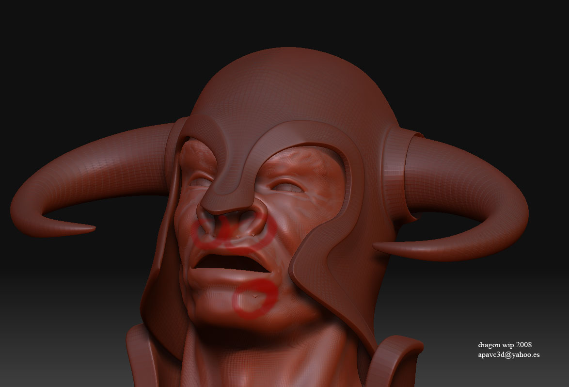 Oye sólo una sugerencia, para darle un poco más de detalle y también para romper un poco la simetría de la cara, que tal si le metieras alguna cicatriz o alguna verruga? O necesitas que sea simétrica? Saludos.