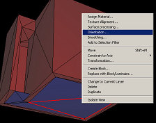 Seleccionamos pues la flecha de selección de superficies, y vamos seleccionando caras después pulsamos con el botón derecho sobre ellas, cogemos?orientation y después reverse. Esto hará que se vuelvan hacia el interior. También podemos aislar la capa, seleccionarlas todas y también ponerles?orientation, reverse. (como veáis, hay mil caminos para un mismo final.