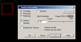 Ahora le diremos al programa las superficies por las que entra el sol (como ya hicimos en el primer tutorial) seleccionamos los vidrios, botón derecho sobre ellos, surface procesing y activamos la casilla window.