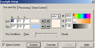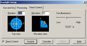 Colocaremos la posición del sol ahora con el direct control en light?Daylight, eh.
