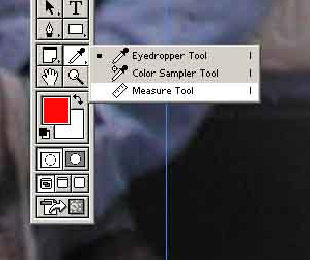 Sabemos que la loseta es de 30 centímetros y los trozos rojos del bastón 20 centímetros, comprobamos la loseta en el plano que vamos a dibujar. Es importante hacer todas las medidas en ese plano, en este caso la cara de la pared. Hay una orden poco conocida en Adobe Photoshop para medir: