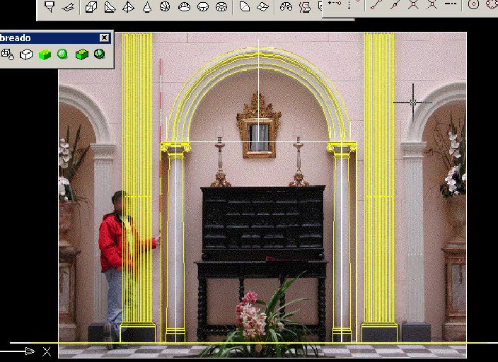 3-Acad le damos a insertar, administrado de imágenes, y la enlazamos. Nahora debemos escalarla a unidades reales de dibujo. Ndibujamos una line vertical de 1.80pregunta (ya que es una medida que tenemos) partiendo de la base de las rayas rojas. Nahora escalamos la fotografía con referencia a esa línea escala, señalamos objeto, ref, punto inicial y punto final de la medida en la fotografía y luego el punto final al que tiene que ir) con esto ya podemos calacarla. En este caso si medimos ahora sobre la fotografía veo que he conseguido un error de +- 3 mm. En general en alzados grandes puedo ir a un error de 1 centímetro según el tamaño del píxel de la fotografía y el rigor con el que lo hayamos hecho. N