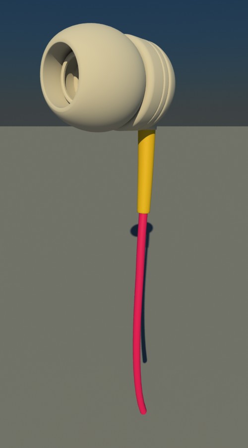 Bueno ahora estoy haciendo los auriculares, no son los originales del IPod sino unos cx300 de sennheiser por que me parecieron más sencillos de modelar. Hay una cosa y es que me parece que estoy usando demasiados polígonos para conseguir que queden bien suavizadas las curvas, espero después aprender a conseguir un buen suavizado con menos polígonos. Dejo unas imágenes de cómo va la cosa.