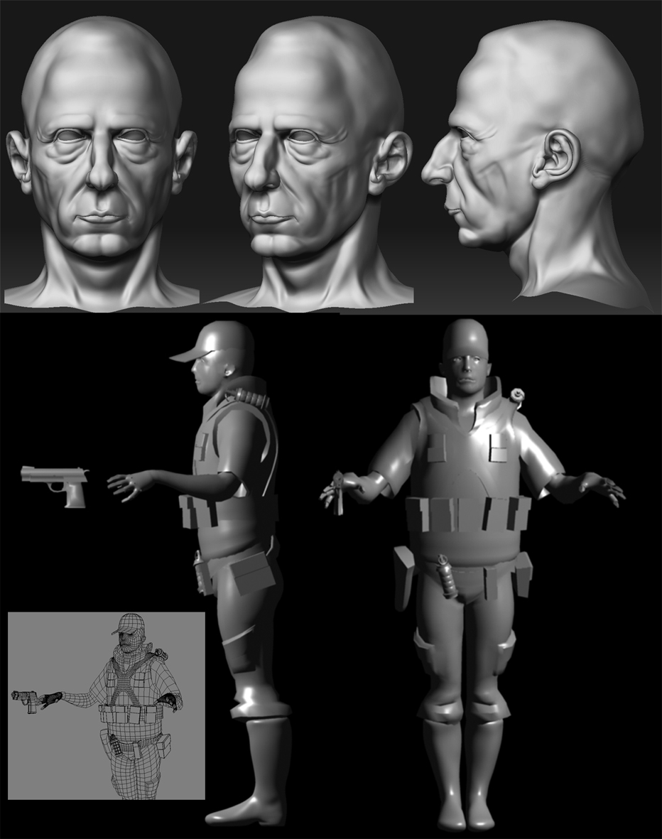 Primera toma de contacto con el resto de objetos del character en ZBrush.