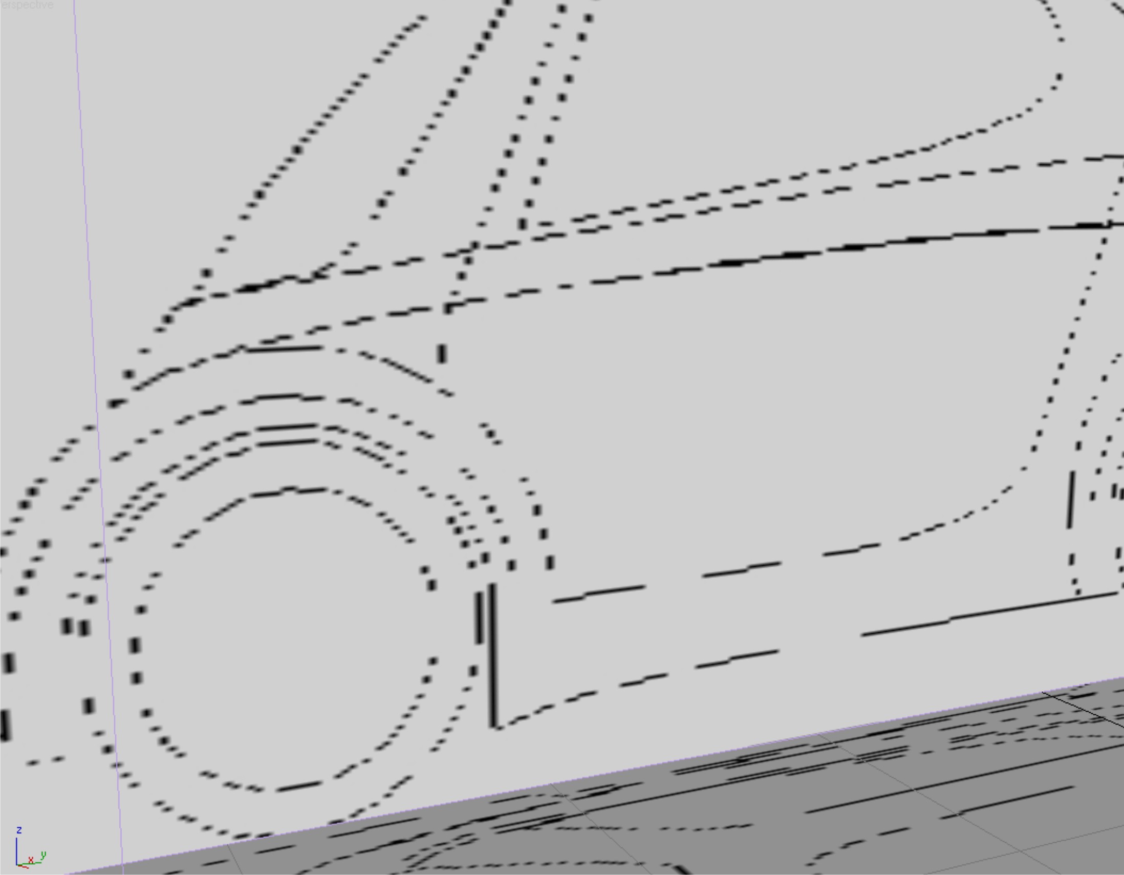 Estoy empezando el modelado de un coche y tengo dibujadas todas las líneas alzado planta y perfil en vectores, las exporto en imagen y las aplico como textura a cuatro planos que me sirven de referencia para comenzar el modelado.