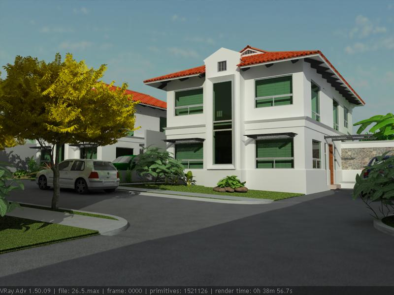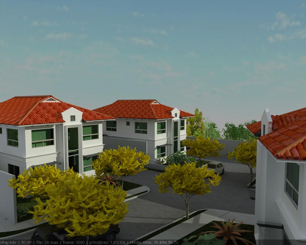 Saludos, bueno no sé si ya entregste el trabajo, pero lo de la luz creo que queda claro, hay que mejorarla y yo en lo personal no enriendo muy qué tipo de material es el que está en las ventanas deberías de mejorarlo también si es que son persianas, y procura conseguir texturas para la vegetación, aquí han poseado buenos links, deberías de buscar si es que tienes tiempo, pero vamos para eso estamos aquí par aprender.