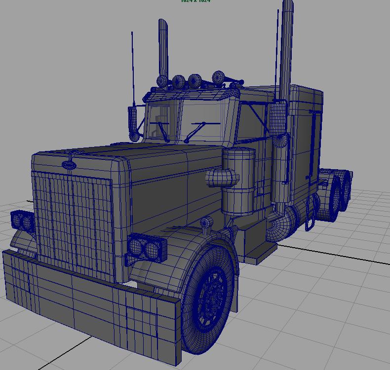 Se trata de un peterbilt 379, estoy intentando que quede lo más real posible y antes de ponerme a texturizar quisiera que me dijerais a ver qué os parece en cuanto a geometría.