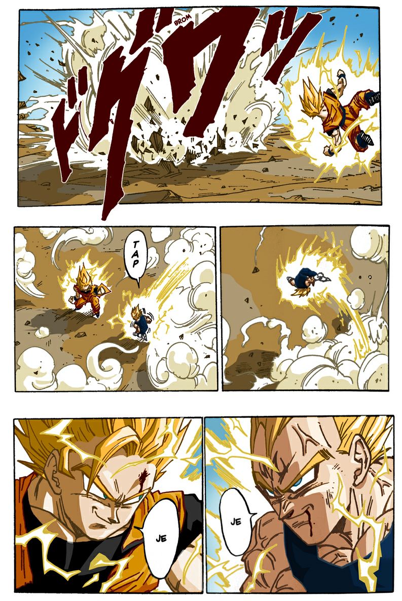 El dibujo es de una página ya dibujada por el maestro Toriyama, pero el color esta correcto, si estuviese el cómic entero coloreado igual, sería sencillo de leer y no saturaría a la vista. Me gusta.