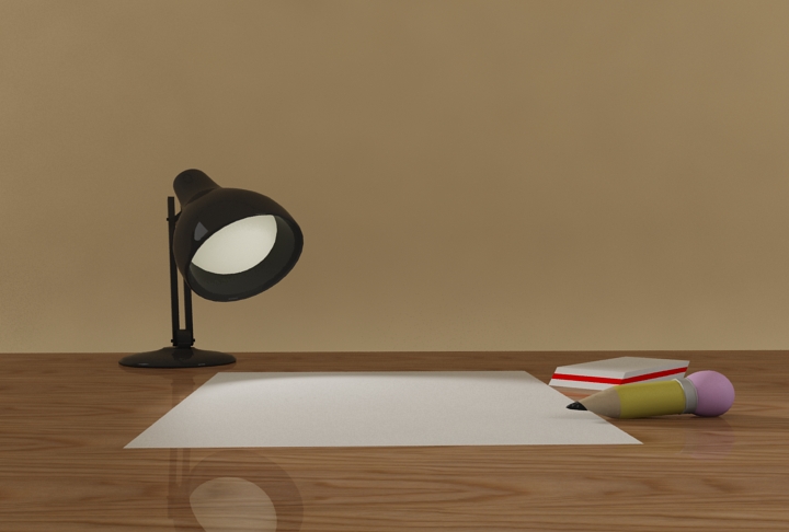 Aquí les dejo una prueba de render para ver que opinan, hoy madare el render final de animación, pero veo que en los últimos frames la sombra del lápiz esta separada de la punta y parece que estuviera levantado y no es así, alguien sabe por que podría será y ya corregí lo de la lámpara. Saludos.