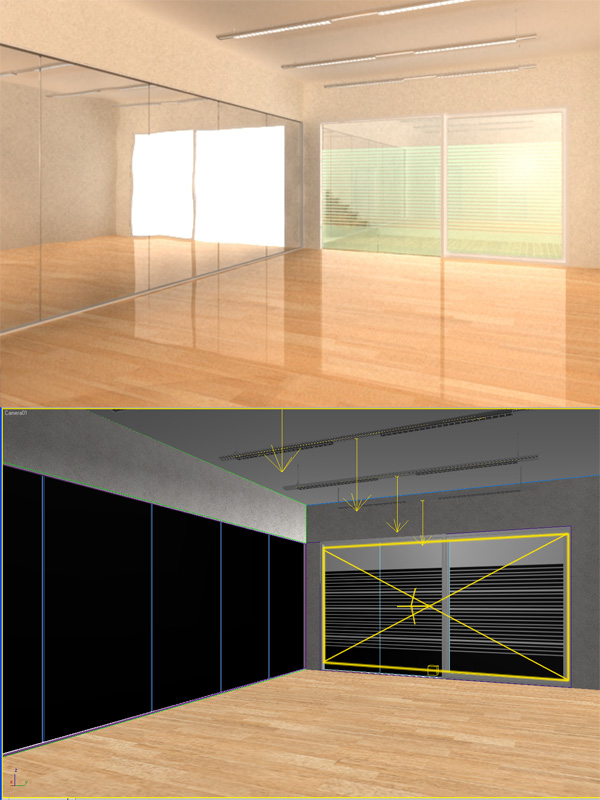 Hola, tengo un problema con esta luz, es Vray Light, como podrán ver en las imágenes esta ubicada paralela al vidrio y, esta tildada la casilla de invisible, pero se está viendo en la reflexión del espejo y del piso, consulte con amigos, y busque en el foro como sacar esto, y no encontré nada.