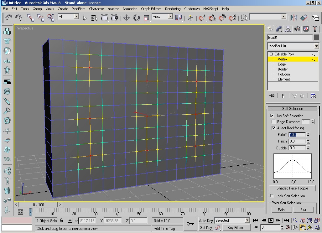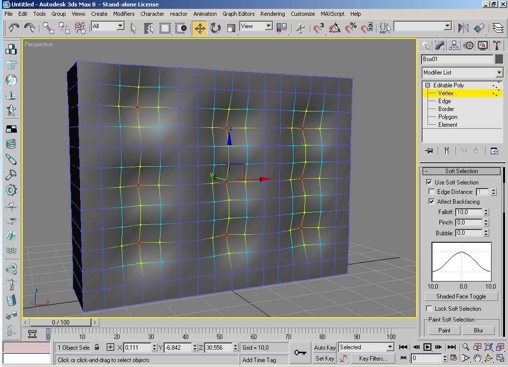 1- Humilde la malla del almohadón o cojín a Edit Poly, en vertex activa la opción software selection y selecciona los puntos que serán el centro de las depresiones.