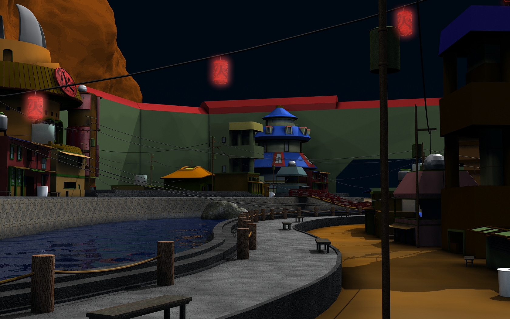 Está chulo, solo que se ven las fachadas demasiado limpias, intenta ensucuiar un poco algunas fachadas (menos la de la casa del hokage que esa la limpian a menudo).