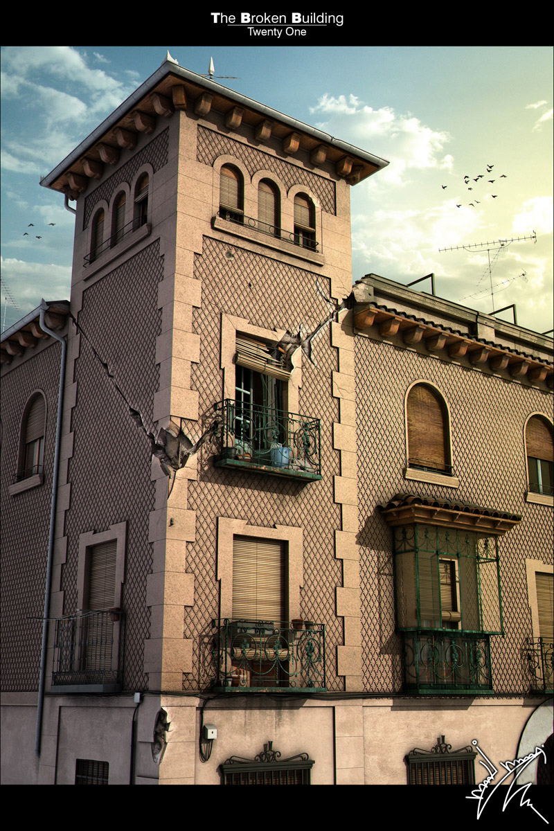 Hola. Esto es mi nuevo trabajo realizado en 3ds Max, the broken building esta inspirado por el trabajo de mi amigo Juan Siquier.