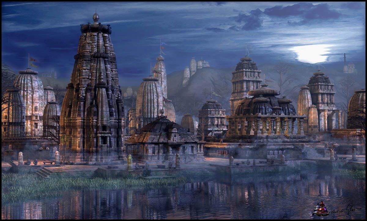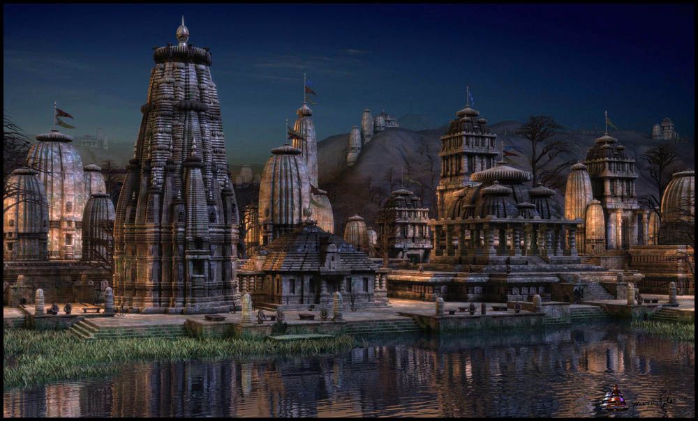 Hola a todos por aquí. Aquí os dejo unas imágenes de mi último trabajo, a ver qué os parece, es una escena de ficción, pero basada en la arquitectura hindú. El 3d está hecho con el LightWave 7.5 y texturas y demás con Adobe Photoshop 6.0. A ver qué os parece, críticas bienvenidas también. Un saludo de Juanjo González.