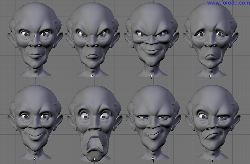 Para que un modelo cobre vida, necesitamos que tenga buenas expresiones y que refleje lo que queremos mostrar. A continuación se mostraran expresiones faciales básicas en lo personajes.
